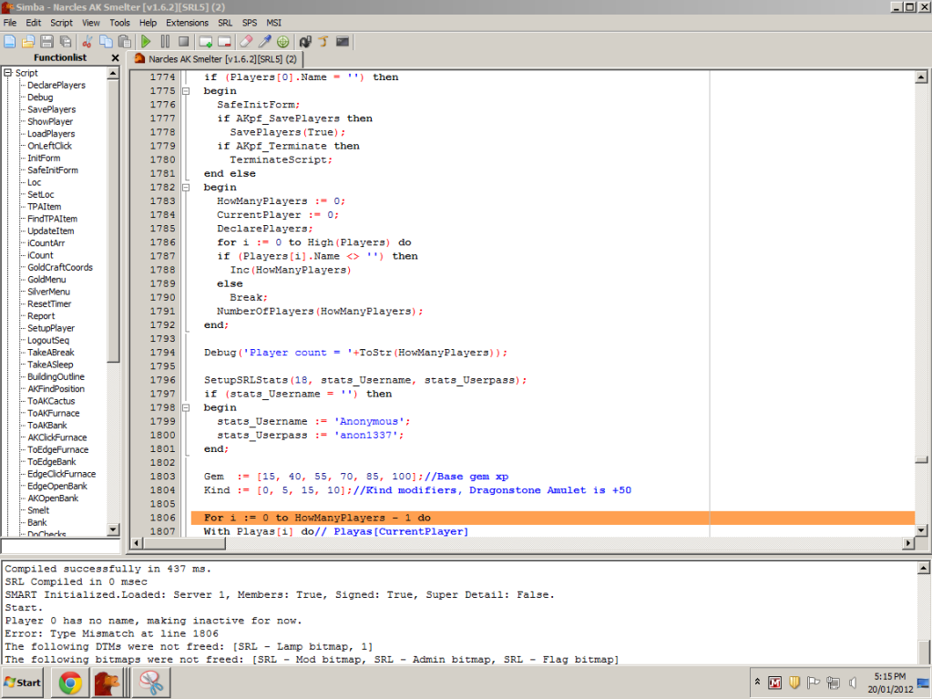 This script got me 22-70 smithing in 2 days! Thanks so much Narcle<33333333
