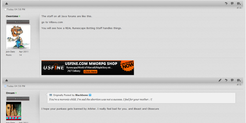 Yo Overtime I'm sorry for being a douche to you. I got mad at you for defending RsBuddy and you got mad at me for blaming RsBuddy. But hope you accept my apology. Also no one on this thread is a douche bag except for Dream, no reason for em to talk to you like that. They like hating each other on Java Bot forums no offense. They fight a lot. Funny how you said are all the staff members going through puberty, just made me day lol. They need to grow up and handle things like men, this coming from a 13 year old.