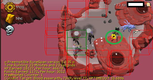 Current Target: Blood esswraith, 73XP, level 77, XPTIMEOUT 10.715s