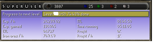 Anyway.. amazing script! 860 ores/h and 30k xp/h is pretty awesome. Will post a decent proggy later, cheers dude!