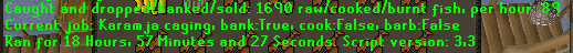 Edit: I'm doing it on a different account now at fish guild, and it does some weird thing where it spam clicks any fishing spot that you have to right click for. The mouse will move off the screen for a second, then move back on and click the fishing spot again, and it will repeat it forever, just looks a bit fishy. :P Love this script though.