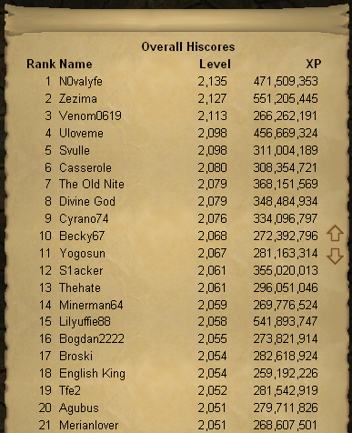 Monkey Moejo, number one, has level 84. N0valyfe is number 10 with level 74. Zezima isn't even in the top 20.