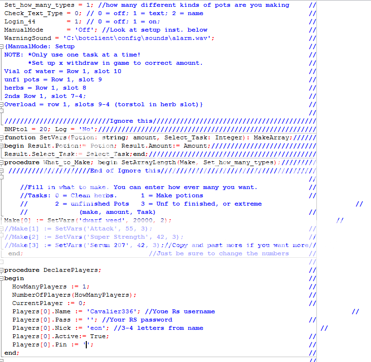 I started back in 2002, Scripting back then was very easy compared to today. Back in rs1(runescape classic) bout the only thing you had to worry about was a shifting screen. No random colors, no random events. Everything could stay the same. There was a runescape train too. Don't remember any names, but it was several bot char that walked a circle around runescape. If there was a place you wanted to go you could catch the runescape people train. Anyways over the years it got harder and harder and I just learned a little by a little. I took a break from rs for a few years. I got married had 2 kids. Then 2 yrs ago got a divorce. I started playing rs again. But the paid refection bots where out. I was very impressed by them, Compared to the old ways. I bought one, then 2, then 3, etc. I didn't need to script. But when the bot nuke came it was back to scripting for me. I had to relearn a lot of forgotten stuff.