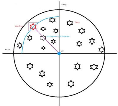 Is it possible to get the x and y coordinates for an item from the degrees and distance you are from an object.